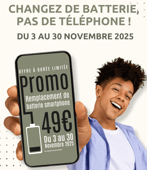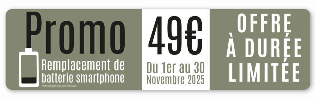 C’est l’occasion idéale pour redonner de la puissance à votre téléphone avant l’hiver. Une batterie fatiguée, c’est un smartphone qui s’éteint au mauvais moment. Grâce à notre offre exceptionnelle, vous repartez avec un appareil performant, sans dépasser votre budget.
